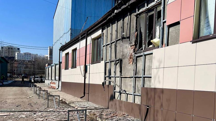 В результате взрыва после падения беспилотного летательного аппарата (БПЛА) в здании выбиты окна и посечен фасад, добавил он.