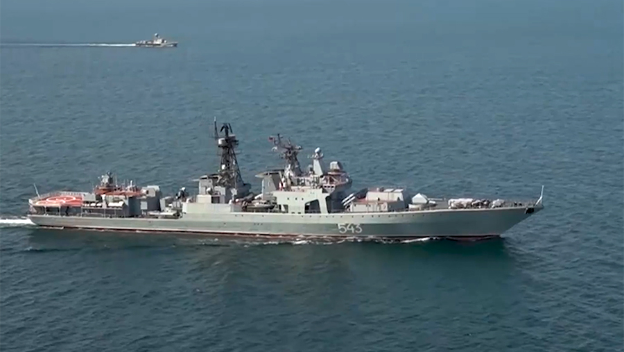 В Оманском заливе на северо-западе Аравийского моря проходит активная часть международных военно-морских учений России, Ирана и Китая «Морской пояс безопасности – 2024». Кадры учений в среду, 13 марта, показало Минобороны РФ.