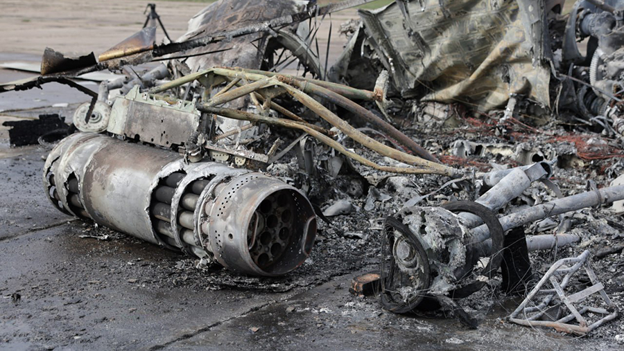 На кадрах видно, что в результате атаки сгорел находившийся на аэродроме вертолет. Как отмечается в сообщении, обошлось без жертв. Полет беспилотника был зафиксирован со стороны «Клеверного моста».