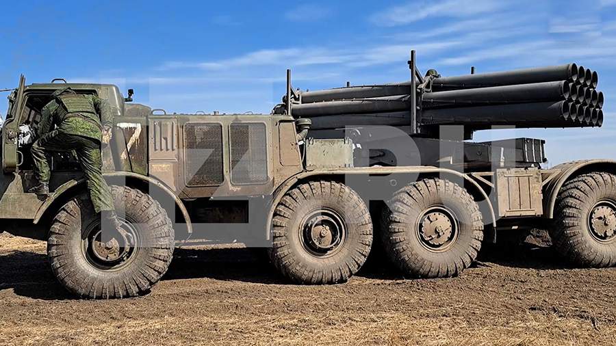Расчеты РСЗО «Ураган» поддерживают огнем наступление ВС РФ на авдеевском направлении в зоне спецоперации. Об этом сообщил корреспондент «Известий» Дмитрий Астрахань.