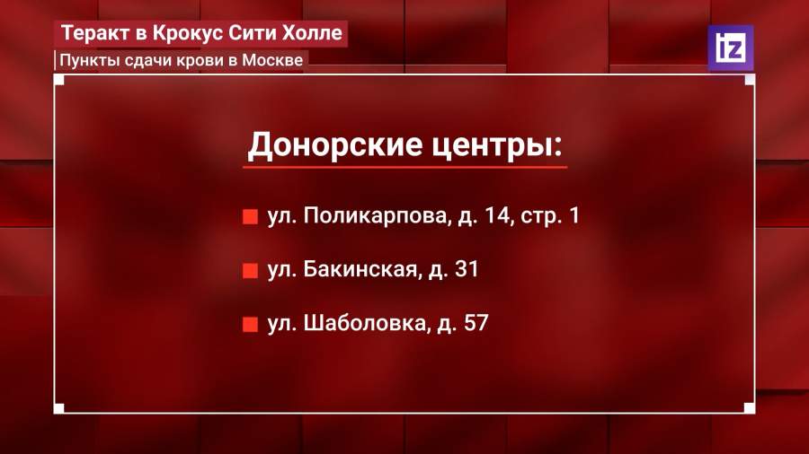 Графика. Пункты сдачи крови и куда обращаться за информацией о пострадавших