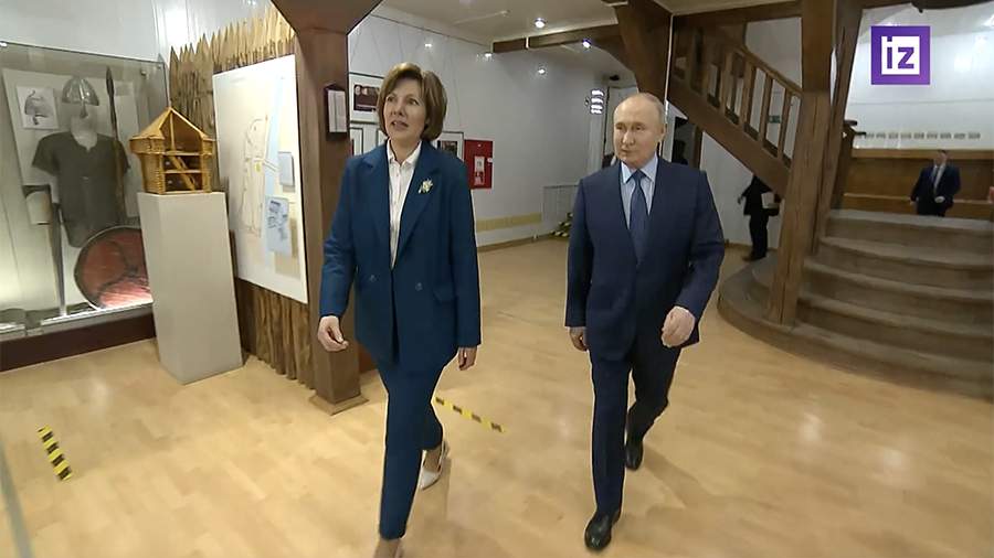 Региональный визит президента начался с поездки в Торжок. Там Путин посетил выставочный комплекс «Музейные ряды» Всероссийского историко-этнографического музея.