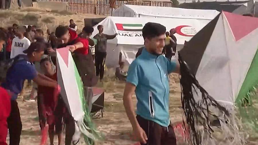 Мероприятие прошло в Рафахе. На кадрах с места события показано, как дети запускают воздушных змеев.