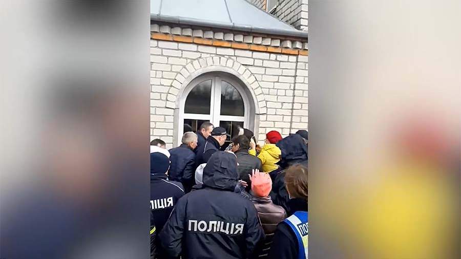 Сторонники раскольнической Православной церкви Украины (ПЦУ) в сопровождении чиновников и сотрудников национальной полиции заблокировали вход в храм канонической Украинской православной церкви в селе Загонцы Хмельницкой области. Об этом в субботу, 30 марта, сообщил Telegram-канал Lavra Live.