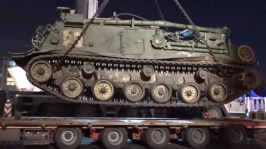 На кадрах видно, как ее выгружают и устанавливают рядом с другой трофейной техникой, которая будет представлена на выставке. На видеозаписи можно увидеть транспорт с австралийским, немецким, американским, а также украинским флагами.