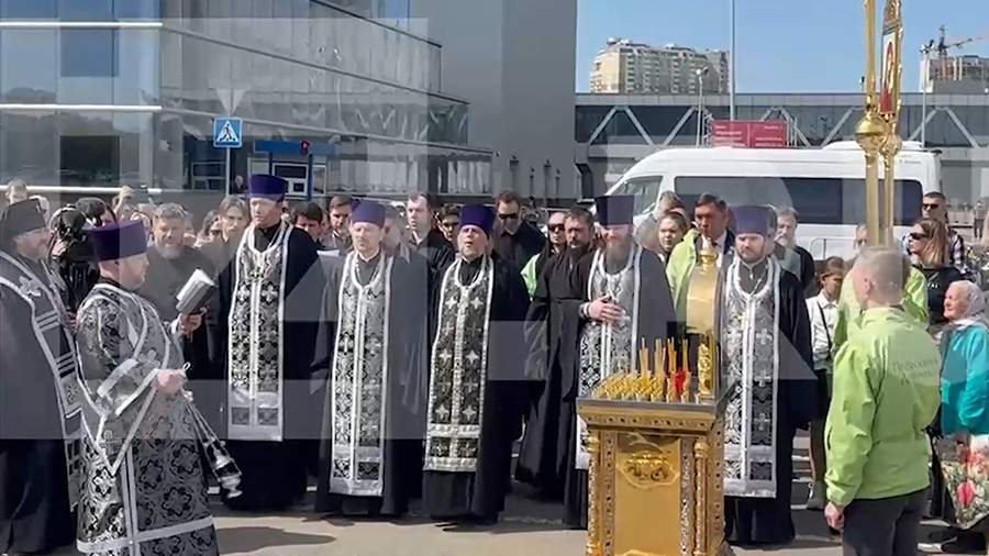 У здания подмосковного «Крокус Сити Холла» во вторник, 30 апреля, проходит панихида по погибшим в результате террористического акта людям. Об этом сообщает корреспондент «Известий».