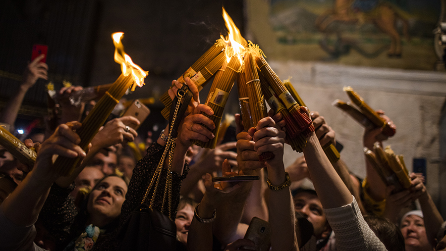 Благодатный огонь сошел в храме Гроба Господня в Иерусалиме