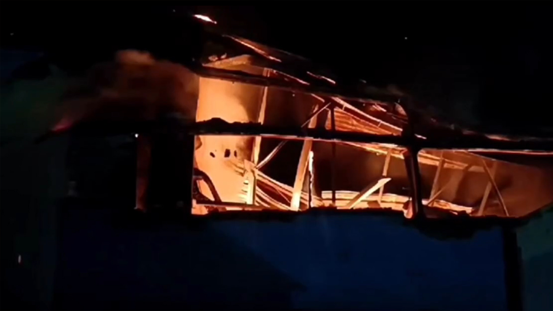 Как следует из опубликованного видео, пожар охватил здание неравномерно. В некоторых местах огонь уже почти потушен, в других над кровлей ангара поднимаются языки пламени.
