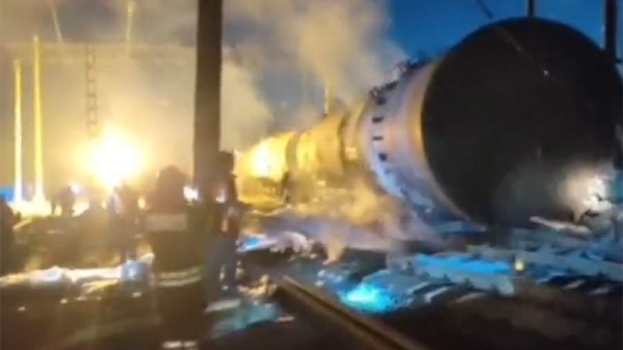 «В 01:42 поступила информация о загорании цистерны с топливом грузового состава на ж/д станции Куберле в поселке Красноармейский», — говорится в тексте сообщения.