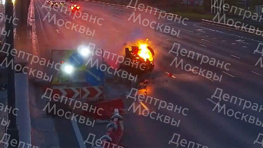 В Москве автомобиль столкнулся с ограждениями дорожных работ на МКАД, а затем перевернулся на крышу и загорелся. Об этом 25 мая сообщила пресс-служба столичного департамента транспорта в своем Telegram-канале.
