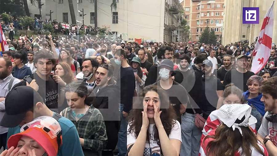 Участники демонстрации в Тбилиси ожидали результатов заседания парламента Грузии по закону об иноагентах у здания законодательного органа. Кадры обстановки после преодоления парламентом президентского вето на закон 28 мая показали «Известия».