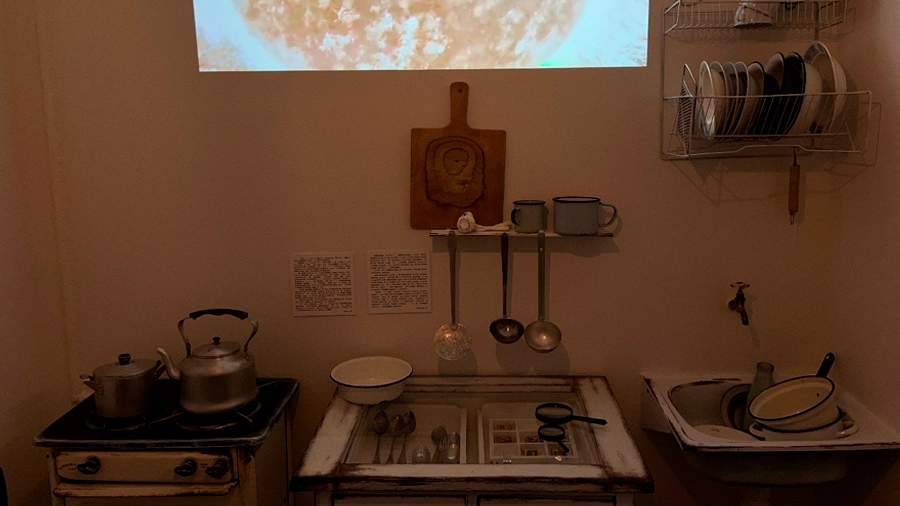 В постоянной экспозиции один зал, наполненный историческими артефактами — это книги с рецептами, архивные документы, предметы быта, посуда и целая инсталляция-кухня. Музей Фабрики-кухни призывает гостей делиться экспонатами, чтобы расширить коллекцию.