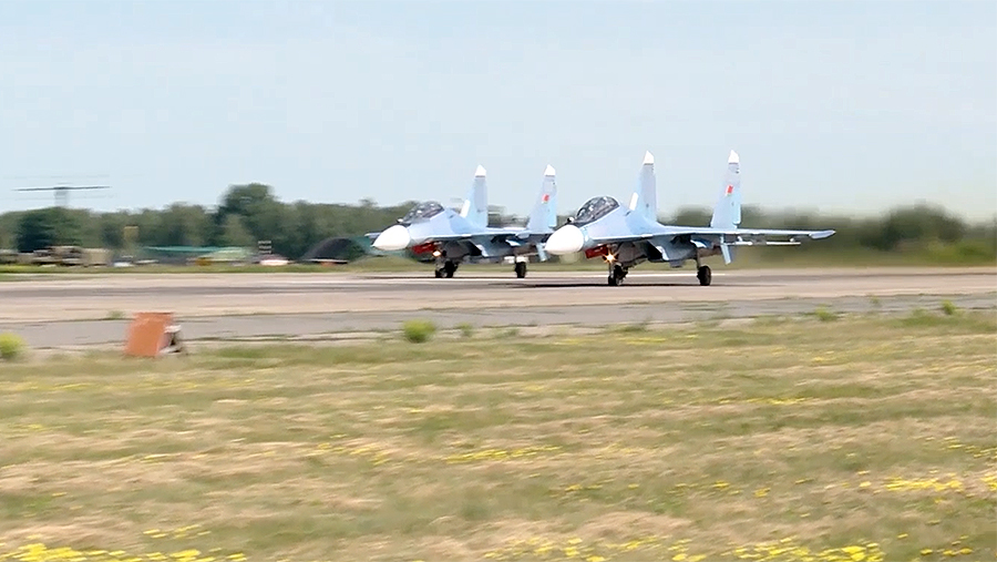 Экипажи истребителей Су-30СМ, бомбардировщиков Су-24 и вертолетов Ми-24, Ми-8 Воздушно-космических сил (ВКС) РФ приняли участие в совместных учениях с Военно-воздушными силами (ВВС) Белоруссии. Об этом 31 мая сообщили в Минобороны России.