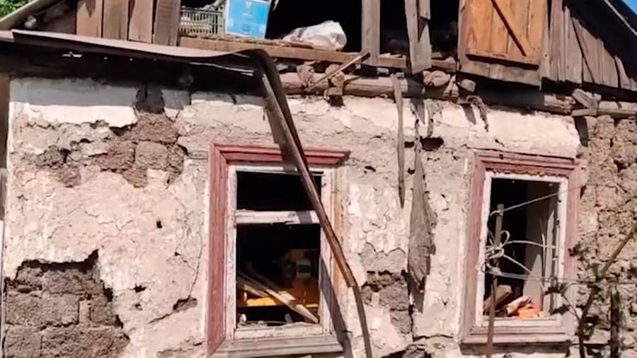 На кадрах с места событий можно увидеть разбитые бетонные блоки, погнутые металлические балки и дырки в стенах от осколков снарядов. Шифер на крыше дома поврежден и частично обрушился.