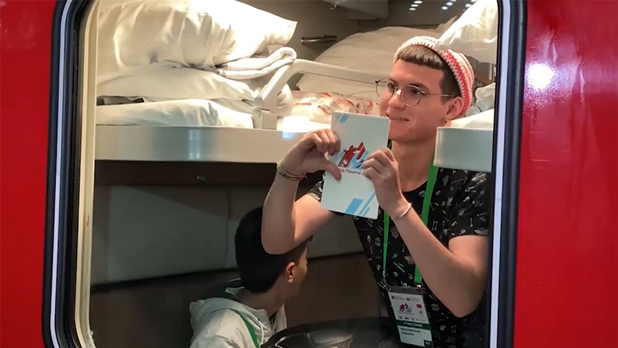«Дорогие ребята, я рада приветствовать вас всех от лица «Российских железных дорог». <...> Мы с командой железнодорожников подготовили со всей любовью в сердце этот поезд, который, как мы надеемся, станет вам домом на ближайшие две недели. <...> Я желаю вам невероятных эмоций, желаю новых друзей, в добрый путь друзья!» — сказала Ракова.