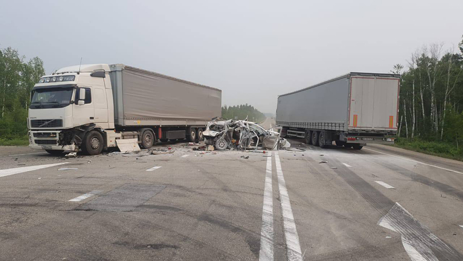 Авария произошла днем в четверг, 27 июня, на 1135-м км федеральной трассы «Амур». Легковая Toyota Spacio столкнулась сразу с двумя фурами Volvo.
