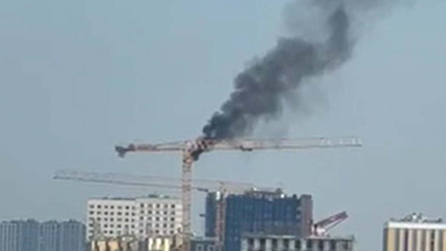 На севере Москвы загорелся башенный кран