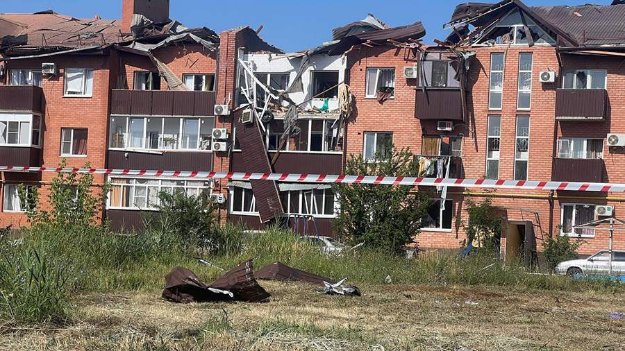 В результате атаки украинского беспилотника в многоквартирном доме в Приморско-Ахтарске Краснодарского края провисла кровля, выбиты фрагмент стены и окна. Кадрами последствий 5 июля делятся «Известия».