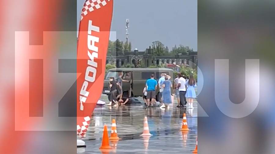 В распоряжении «Известий» также есть кадры момента удара молнии. На них видно, как молния бьет в зонт, который держит один из идущих в группе людей.