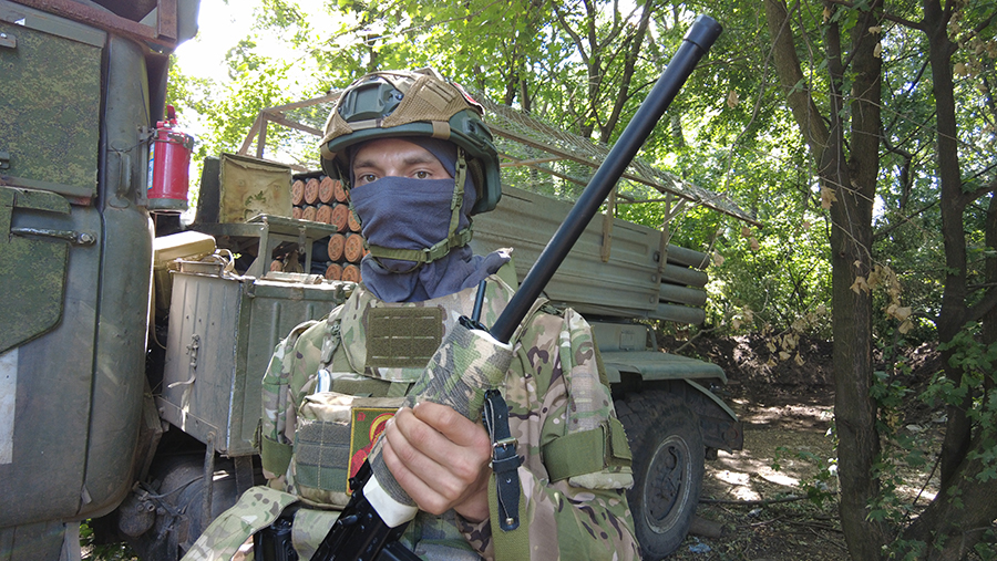 Боец с позывным Рыбак вооружен полуавтоматическим ружьем «Сайга». Это охотничий карабин, сделанный на базе автомата Калашникова.