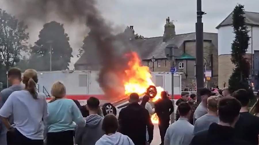 Помимо этого, протестующие подожгли центральный полицейский участок в ходе беспорядков в городе Сандерленд. На кадрах, представленных телеканалом, видно, что огонь полностью распространился по всей территории участка.