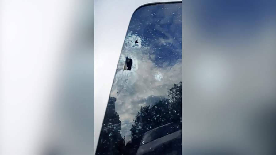 Однако мужчинам удалось развернуться и уехать. Прибыв в безопасное место, один из пострадавших снял на видео последствия атаки боевиков на автомобиль. В результате обстрела у машины было выбито стекло и повреждены двери.