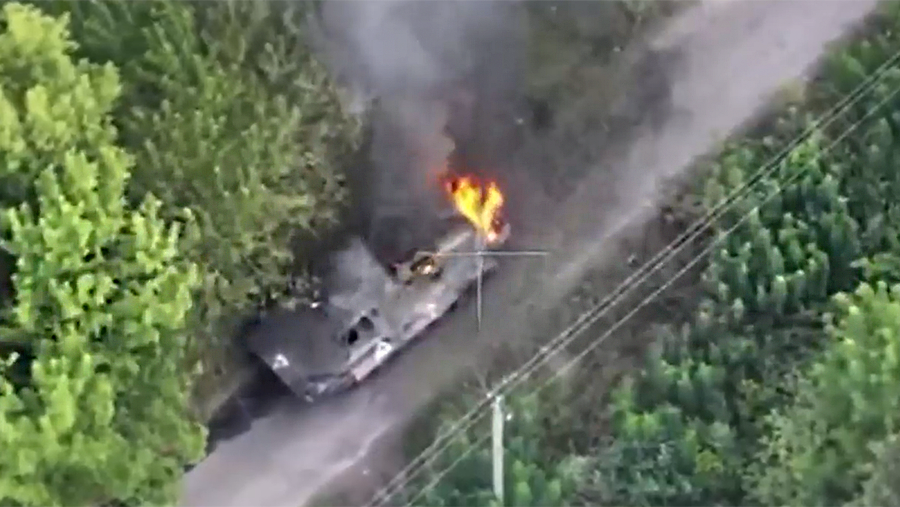 Российский боец сжег канистрой с бензином заглохшую БМП боевиков в Курской области