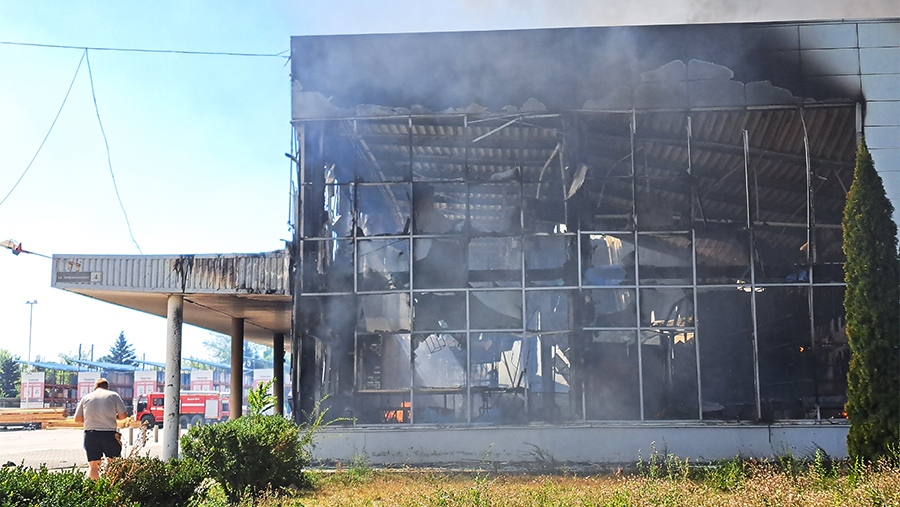 Как следует из видео, помещение практически полностью выгорело. Пол завален обломками и лопнувшими от огня стеклами. Во время пожара обрушилась крыша. Здание уничтожено огнем.