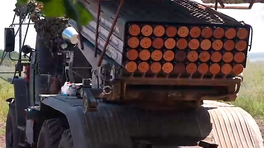 Расчет реактивной системы залпового огня (РСЗО) «Град» группировки войск «Север» отработал по целям Вооруженных сил Украины (ВСУ) в приграничном районе Курской области. Минобороны РФ 22 августа опубликовало фрагмент боевой работы расчета по живой силе и технике противника.