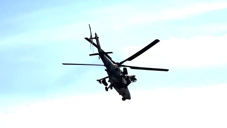 «Экипаж армейской авиации на вертолете Ми-35м нанес удар авиационными средствами поражения по замаскированной, бронированной технике подразделений ВСУ в приграничном районе Курской области», — говорится в сообщении ведомства.