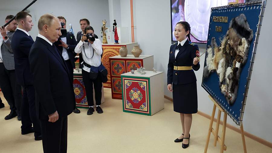 Президент РФ Владимир Путин в понедельник, 2 сентября, посетил Кызылское президентское кадетское училище в рамках рабочего визита в Республику Тыва.