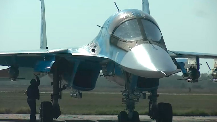 Экипаж истребителя-бомбардировщика Су-34 Воздушно-космических сил (ВКС) России успешно атаковал скопление личного состава и военной техники Вооруженных сил Украины (ВСУ) в одном из приграничных районов Курской области. Минобороны России 18 сентября показало кадры боевой работы экипажа.