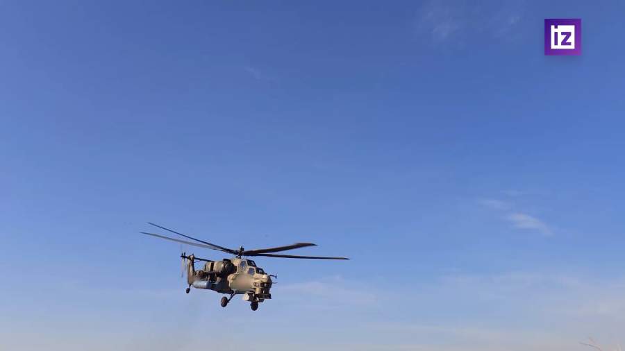 Боевая работа экипажа вертолета Ми-28нм в приграничном районе Курской области