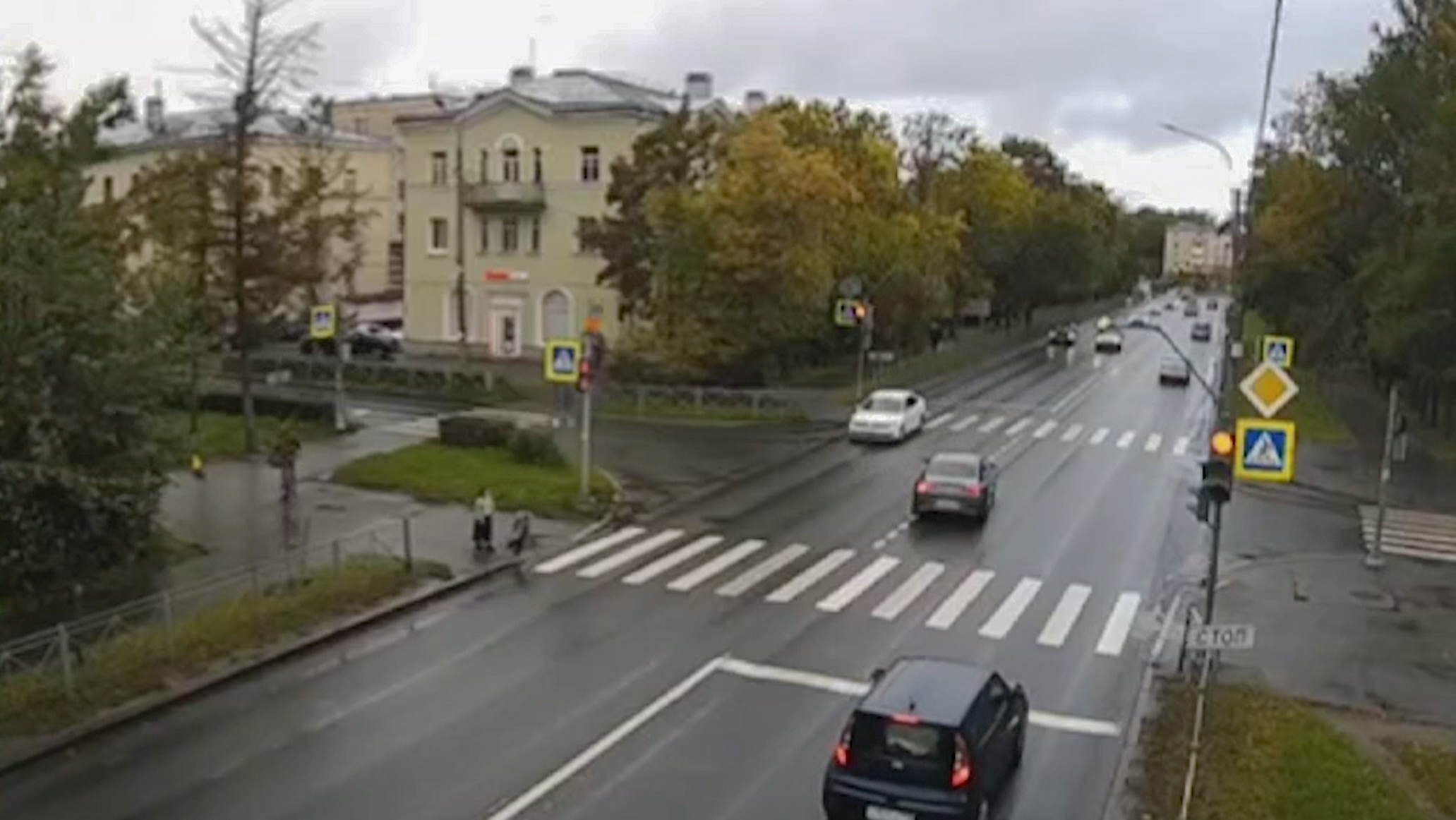 На видеокадрах с места происшествия видно, что мальчик находился на тротуаре в сопровождении взрослого и побежал через дорогу по «зебре», когда на светофорах уже горел красный запрещающий движение сигнал. При этом на пешеходном светофоре сигнал еще также был красным.
