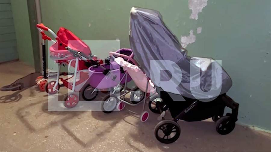 На кадрах можно увидеть, что рядом с дверью, где проживает семья убитых девочек, стоят несколько колясок и детских самокатов.