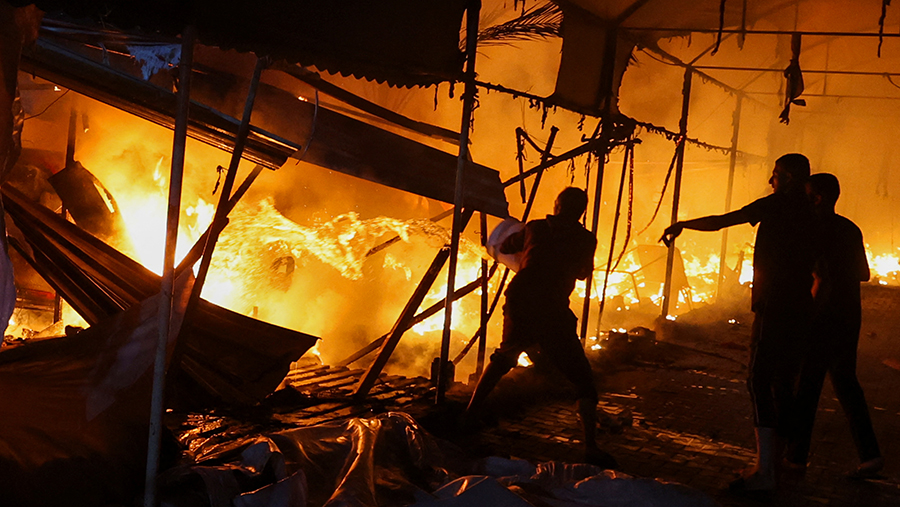 «Палатки перемещенных лиц в больнице мучеников Аль-Акса в центральной части сектора Газа сгорели в результате израильской бомбардировки этого района», — говорится в сообщении в Telegram-канале.