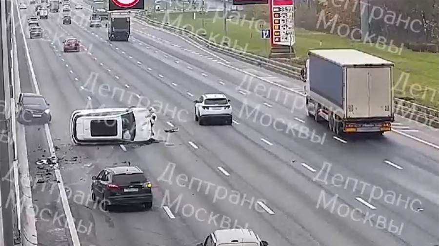 В Москве на внешней стороне 12-го км МКАД произошло ДТП с участием четырех автомобилей, один из них опрокинулся. Об этом 15 октября сообщил департамент транспорта столицы.