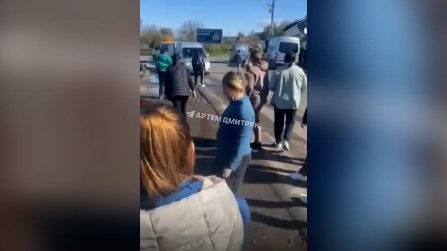 В Закарпатье женщины пытались перевернуть автобус ТЦК и кидали в него камнями