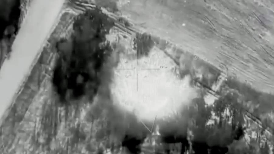 На кадрах виден сброс боеприпаса с «Иноходца». Снаряд попал точно в цель, и комплекс РЭБ взорвался.