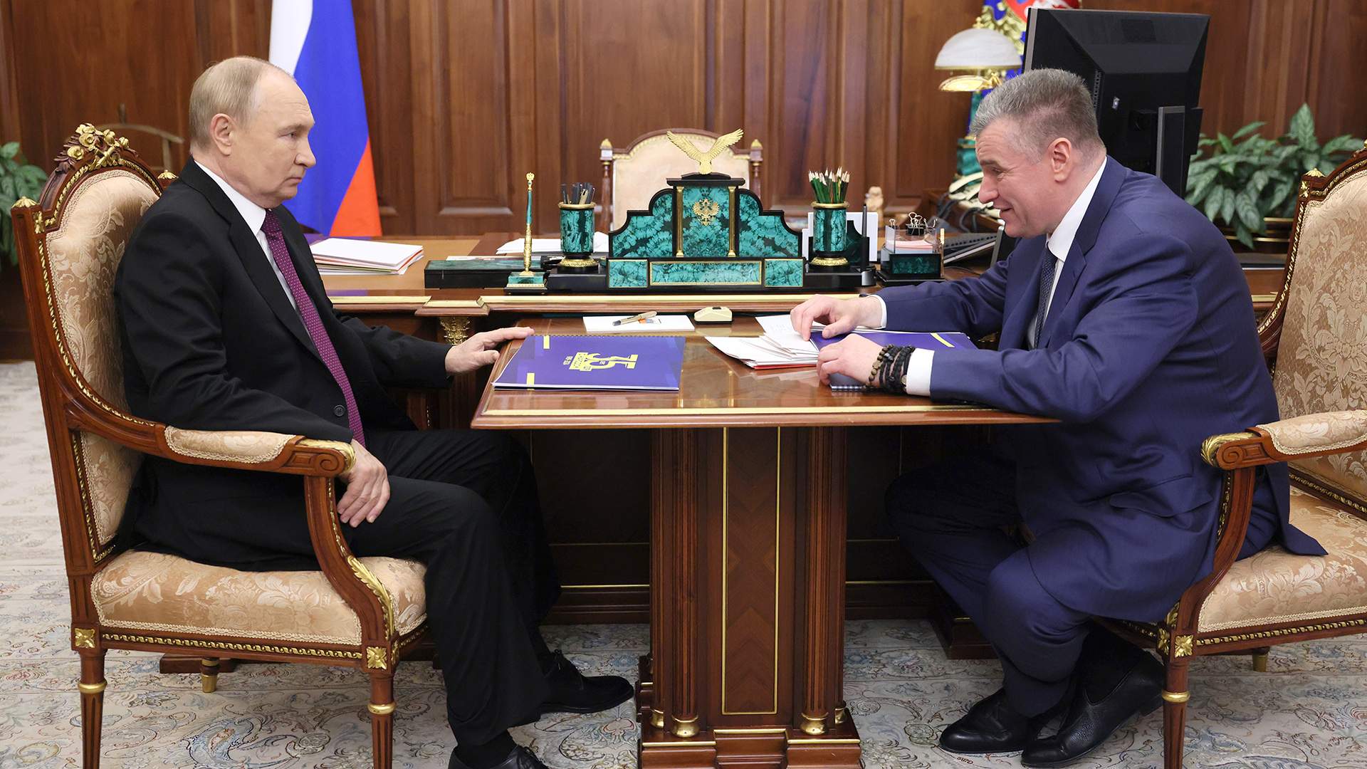 Владимир Путин продолжил серию встреч с главами политических фракций в Государственной думе: вторым после единороссов на беседу в Кремль пришел лидер ЛДПР Леонид Слуцкий. Он, к слову, был одним из четырех претендентов на президентское кресло в марте 2024-го, однако в избирательной гонке занял последнее место, набрав всего 3,2%, или почти 2,8 млн голосов россиян. Наедине Владимир Путин и Леонид Слуцкий в последний раз общались в прошлом году, однако в 2024-м политики уже виделись несколько раз — после избирательной кампании, на митинге-концерте в честь воссоединения РФ с Крымом и на общей встрече с лидерами фракций в марте.