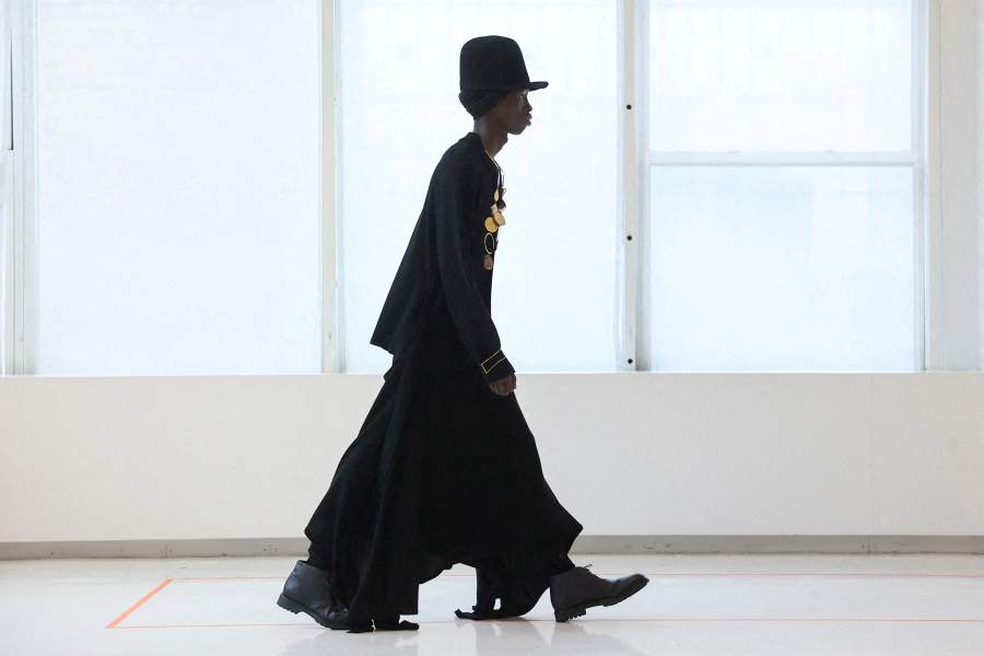 Модель на подиуме во время показа коллекции Кристиана Коуэна
