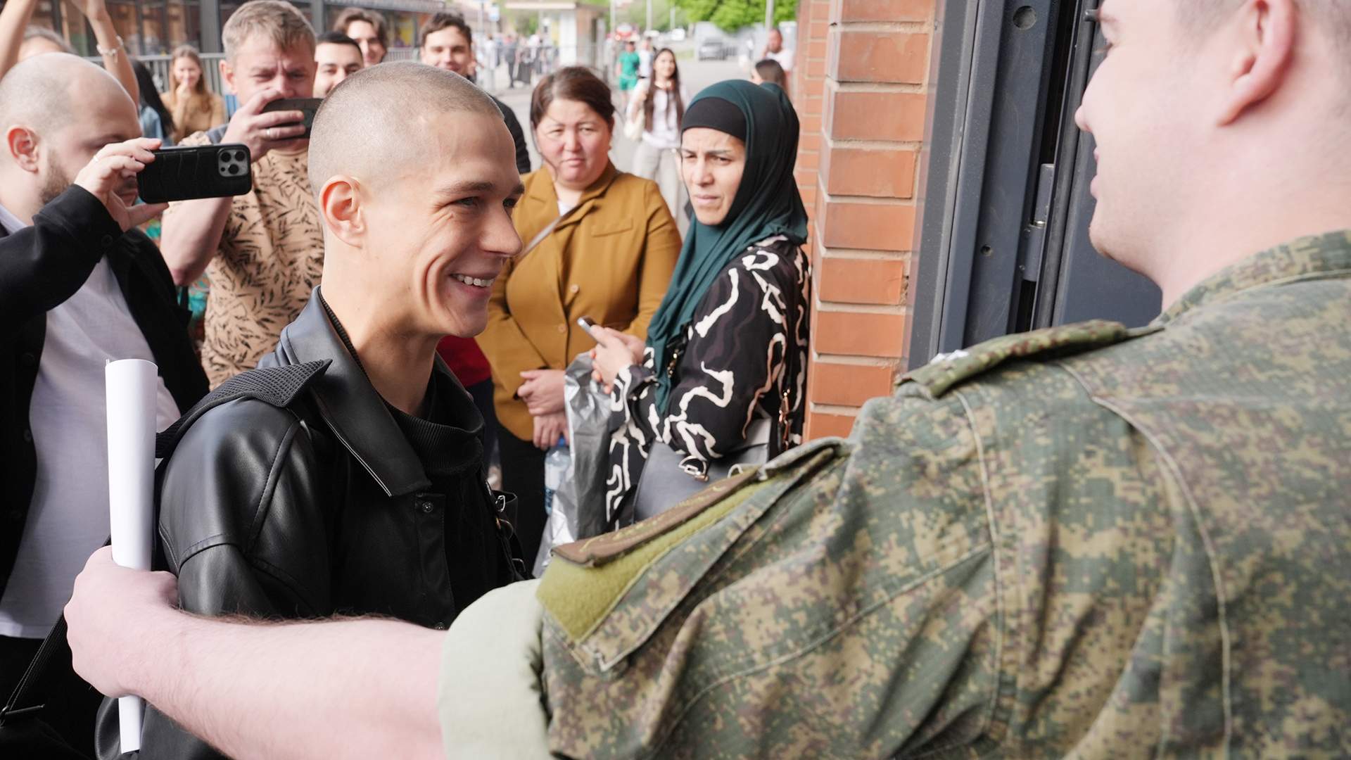 На вопрос о том, будет ли ждать девушка, Сухов отшутился: «Тысячи», но Глеб Калюжный несколько раз произнес: «Одна точно будет». На территорию сборного пункта он зашел под напутствия близких: «С Богом!» и «Удачи, брат!» А лейтенант, встречающий по списку всех новобранцев, возможно, узнав в нем звезду, по-братски похлопал по плечу и поприветствовал: «Вижу: готов! Давай забегай!»