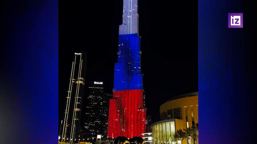 Башня Бурдж-Халифа в Дубае в цветах России