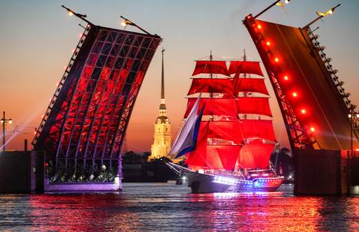 Кульминацией вечера стали проход брига «Россия» по Неве под алыми парусами и залпы настоящих пусковых установок «катюша» (БМ-13), являющихся частью водно-пиротехнического шоу праздника.