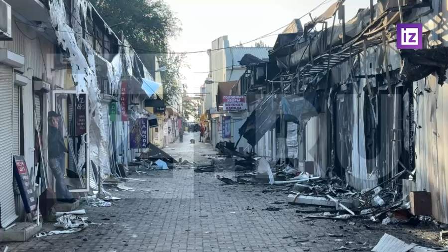 Последствия ночной атаки на торговые ряды в Донецке