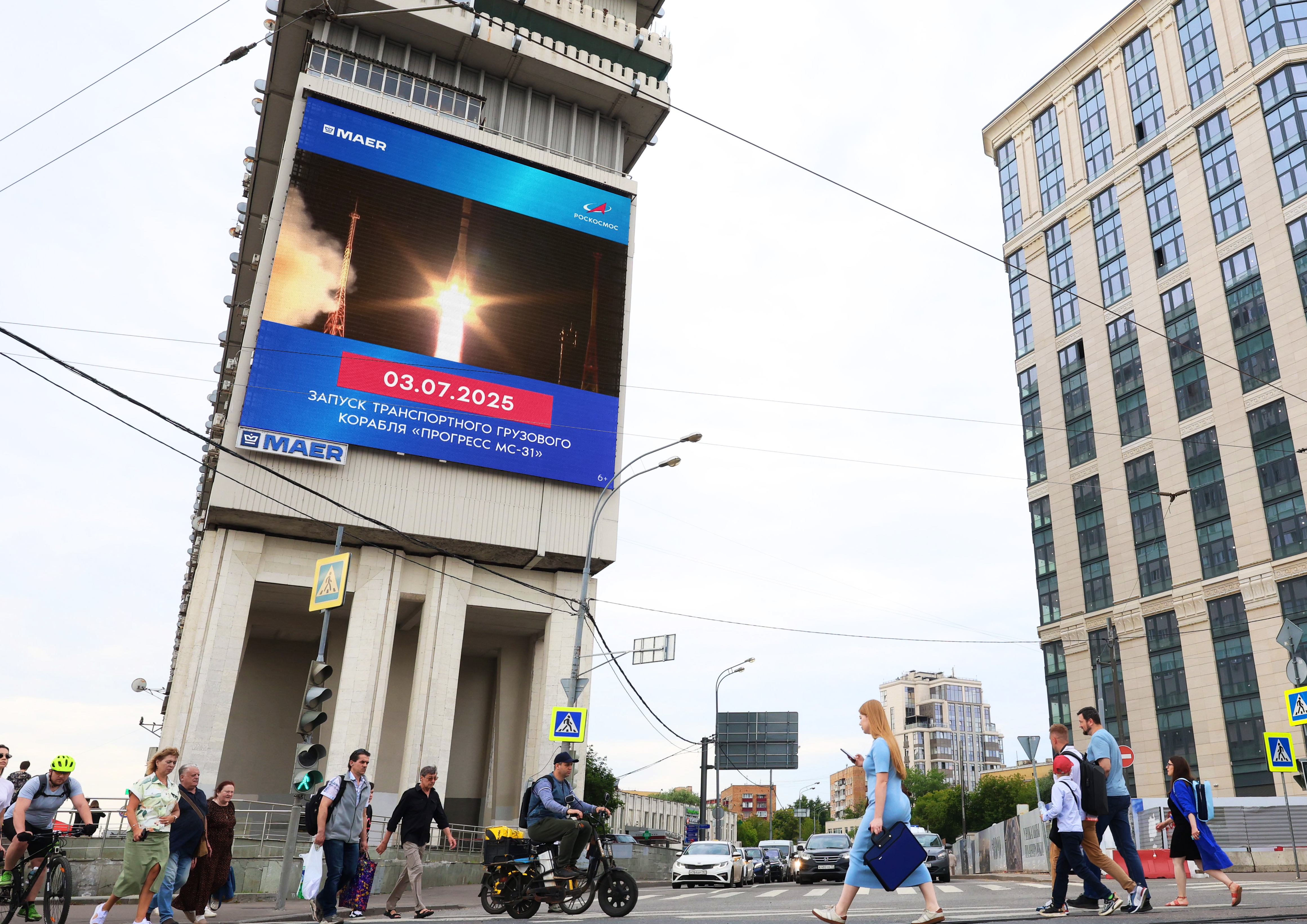Запуск грузового корабля «Прогресс МС-31» ракетой-носителем «Союз-2.1а» состоялся 3 июля в 22:32:40 по московскому времени с космодрома Байконур. Днем 4 июля кадры старта начали транслировать на уличных медиаэкранах по всей России, за три дня их увидят свыше 30 млн раз.