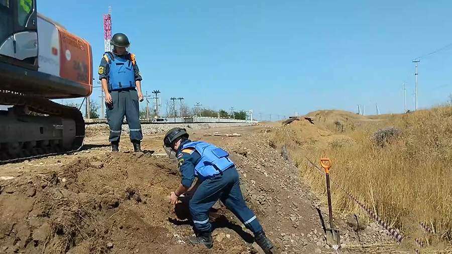 «В Ленинском районе пиротехники МЧС России уничтожили девять взрывоопасных предметов (восемь противотанковых мин и один саперный заряд времен ВОВ). Работу пиротехников осложняла близость к железнодорожному полотну», — следует из публикации.