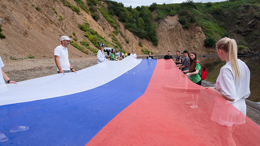 В честь Дня Государственного флага России на Сахалине прошел патриотический флешмоб. Соответствующие кадры 22 августа публикуют «Известия».