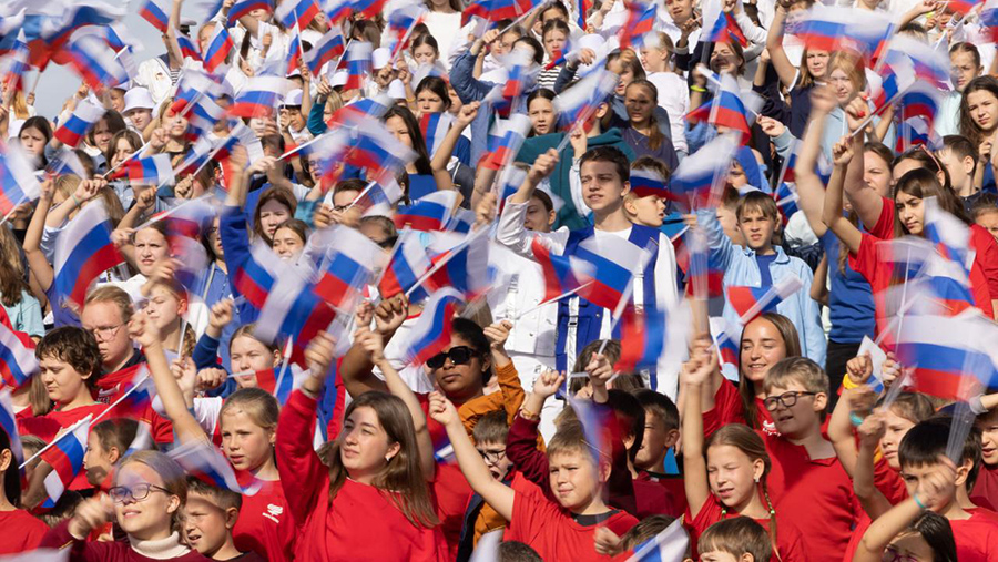 Около 400 детей создали масштабный триколор у Музея Победы