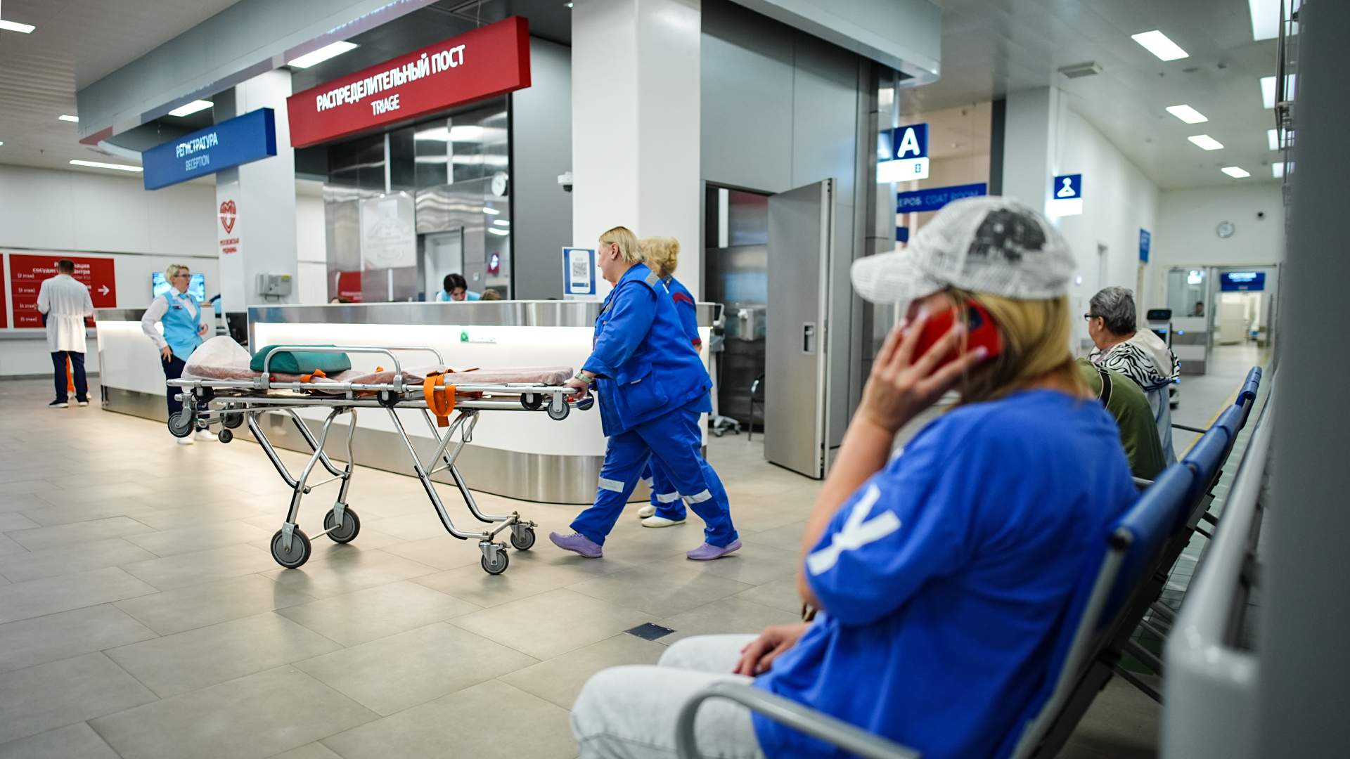У стойки — обеспокоенные женщина и мужчина, чью пожилую маму привезли сюда час назад в тяжелом состоянии. Ее нашли лежащей на полу в квартире, в воздухе стоял сильный запах лекарства. Что явилось причиной потери сознания больной, станет ясно несколько позже. Пока родственникам объясняют, что она у врачей, скоро ее обследуют и скажут им, что случилось, и надо ждать либо здесь, либо дома. «Но ведь пока ничего не случилось? От нас же ничего не скрывают, да? В полдень позвонить, значит», — в 10-й раз спрашивает женщина медсестру. Та терпеливо отвечает на один и тот же вопрос. Врачи работают и правда очень быстро, ручкой в бумажную карту ничего не вписывают — всё заносят в компьютерную программу. Говорят, информация о болезнях пациентов надежно защищена.